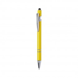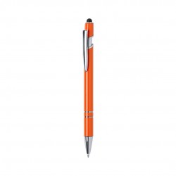 Bolígrafo puntero de mecanismo pulsador con cartucho jumbo y tinta azul, que combina funcionalidad y estilo. Presenta acabado en colores brillantes, con accesorios cromados y clip metálico, ofreciendo un diseño original y atractivo para el día a día.