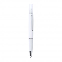Bolígrafo con pulverizador recargable integrado y capucha protectora, que incluye puntero en color gris. Fabricado en ABS brillante resistente con acabado liso, clip metálico elegante y escritura en tinta azul. Capacidad del pulverizador: 3 ml (líquido no incluido).