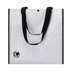 Biodegradable Bolsa reutilizable en resistente material laminado. Con asas largas reforzadas en nylon de 70cm, fuelle reforzado con ribetes y cierre de corchete. De acabado cosido y resistencia hasta 12kg de peso. Disponible en gama de colores brillantes.