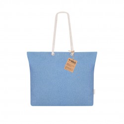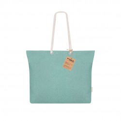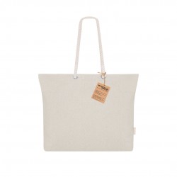 Bolsa confeccionada principalmente en Algodón Reciclado de 220g/m2. Con fuelle y asas largas de algodón en color natural y diseño trenzado. Incluye distintivo algodón reciclado.