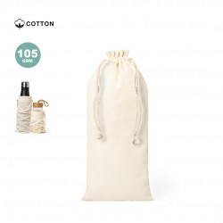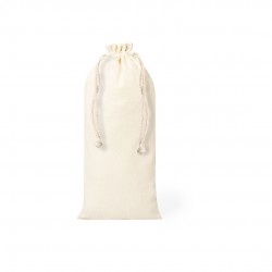 Bolsa fabricada en algodón 100% de 105 g/m², con acabado cosido y cordones autocierre de algodón. Tamaño 12x33 cm, especialmente diseñada para packaging de botellas y termos, combinando funcionalidad, resistencia y sostenibilidad.