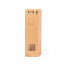 Bidón línea Nature de 750 ml, fabricado en acero inoxidable de acabado mate y corcho. Incluye tapón de seguridad y se presenta en atractiva caja de diseño eco.