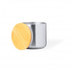 Bidon Térmico 500 ml. 2 Vasos Térmicos 300 ml Práctico set de bidón y vasos térmicos en acero inox. Incluye bidón térmico de 500 ml de capacidad fabricado en acero inox con detalle superior de bambú y asa. Además, contiene 2 vasos de 300 ml de capacidad cada uno fabricados acero inox y tapaderas fabricadas bambú con cierre de presión. Presentado en una caja troquelada de diseño kraft.