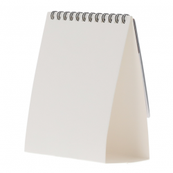 Calendario de sobremesa de anillas con base triangular de cartón.
