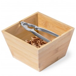 Bowl Bambú Incluido Práctico set cascanueces. Contenido: Bowl fabricado en bambú natural, con 1,4 l de capacidad. Cascanueces de acero inoxidable, con diseño ergonómico que permite romper la cáscara de manera rápida y sencilla, manteniendo el fruto intacto. Presentación individual en caja de diseño kraft.