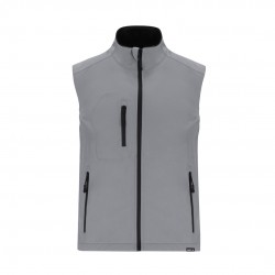 Resistente al Viento y al Agua Chaleco Soft Shell RPET confeccionado en 3 capas, de 340 g/m2. Con membrana de 8000mm, impermeable y transpirable. Exterior en Soft Shell e interior en tejido polar microfleece en color negro. Con bolsillo exterior en pecho derecho y dos bolsillos laterales con cremalleras. Con cremallera central y cremalleras invertidas en bolsillos, incluyendo tiradores de cordón en color negro. Cuenta con protector de barbilla a juego y cintura ajustable, con cordón elástico y tope. Distintivo RPET en el ribete de la prenda.