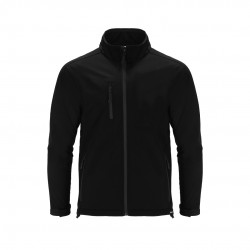 Resistente al Viento y al Agua Chaqueta Soft Shell RPET confeccionada en 3 capas, de 340 g/m2. Con membrana de 8000mm, impermeable y transpirable. Exterior en Soft Shell e interior en tejido polar microfleece en color negro. Con bolsillo exterior en pecho derecho y dos bolsillos laterales con cremalleras. Con cremallera central y cremalleras invertidas en bolsillos, incluyendo tiradores de cordón en color negro. Mangas ranglán con sistema de ajuste de velcro en el puño en color negro. Cuenta con protector de barbilla a juego y cintura ajustable, con cordón elástico y tope. Distintivo RPET en el ribete de la prenda.