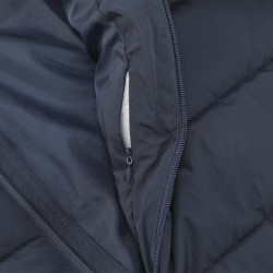 Resistente al Viento y al Agua Parka unisex acolchada con capucha fija y visera integrada. Incorpora cremallera frontal a tono con doble tirador y protector de barbilla. Puños elásticos para un ajuste cómodo y dos bolsillos laterales con cierre de cremallera a juego. Incluye acceso interior para marcaje en pecho izquierdo y espalda, ideal para personalización.