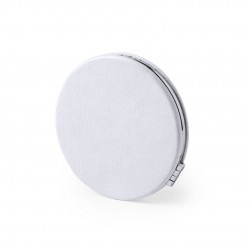 Espejo plegable en elegante acabado de polipiel blanca, con dos espejos interiores: uno de 1X y otro con aumento 2X, combinando practicidad, estilo y funcionalidad para el cuidado personal.