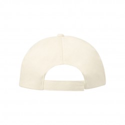 Gorra de línea nature de 5 paneles, fabricada en algodón orgánico de suave acabado en color crudo. Con orificios de ventilación bordados y cierre ajustable de velcro. Incluye distintivo de algodón orgánico en etiqueta.