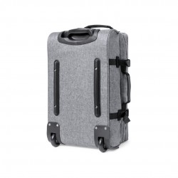 Cuenta con interior forrado con cintas elásticas de sujeción, exterior con 2 cintas ajustables, cierres de hebilla, bolsillo frontal con cremallera invisible y 2 asas acolchadas de transporte. Incluye mecanismo extensible metálico en negro, cómoda asa superior y 2 ruedas.