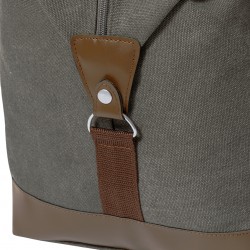 Elegante bolso fabricado en resistente canvas de 475g/m2 gris, con prácticas y resistentes asas en polipiel alrededor del bolso y esquinas reforzadas. Compartimento principal con cierre de cremallera a juego con las asas y cinta para hombro ajustable con mosquetón. Incluye bolsillo exterior de fácil acceso .Presentado en bolsa individual reciclada.