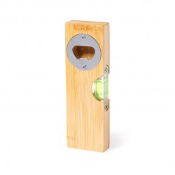 Nivel de línea nature fabricado en bambú, con abridor metálico integrado. Presentación en caja individual de diseño kraft.