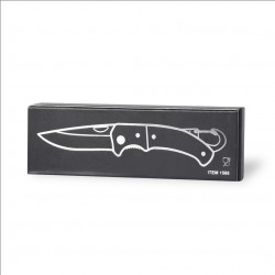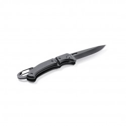 Navaja con hoja en acero inox de acabado negro y resistente empuñadura a juego en aluminio. Con mosquetón integrado en mango y bloqueo de seguridad. Con troquelado en hoja para una fácil apertura y presentada en caja individual de diseño negra.