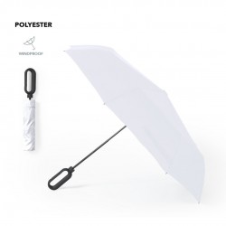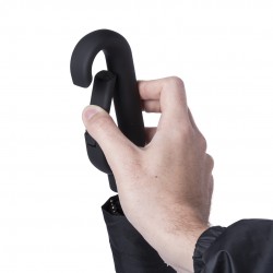 Fabricado en resistente material pongee, con varillas de fibra en color negro, cierre de velcro y mango ergonómico con mosquetón de enganche integrado. Presentado en funda individual a juego, combinando durabilidad, comodidad y transporte práctico.