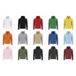 Sudadera con capucha forrada a tono de doble tejido. Confeccionada en algodón y poliester en suave felpa perchada de 280 g/m2. Con Bolsillo tipo canguro. Cordón ajustable y ojales metálicos a tono. Cubrecosturas en el cuello. Puños y la cintura en punto canalé 1x1 con elastano para mayor ajuste y confort.