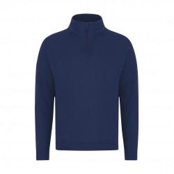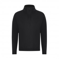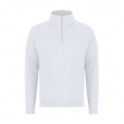 Sudadera unisex con media cremallera en algodón y poliester en suave felpa perchada 280 g/m2. Cuello alto doble forrado. Cremallera a tono con tirador. Puños y cinturilla en punto canalé 1x1 con elastano, para un ajuste cómodo y duradero. Con costura lateral.