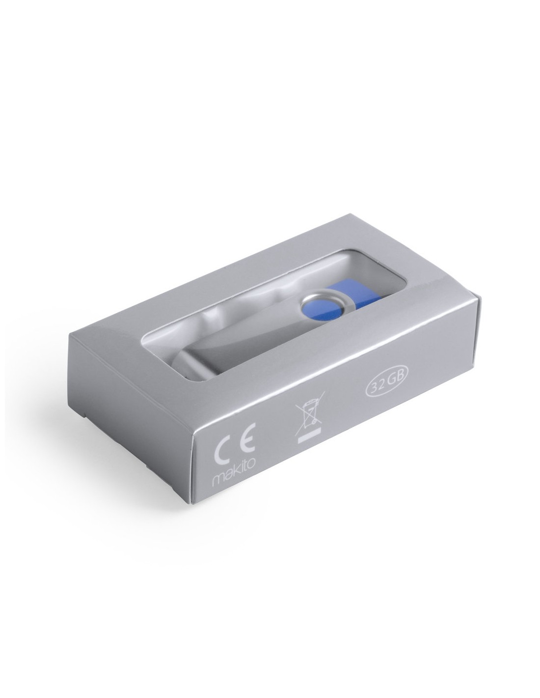 Memoria USB con capacidad de 32GB carcasa metálica y cuerpo a color. Presentada en caja individual.