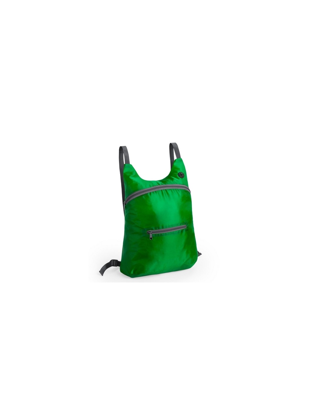Mochila plegable en suave poliéster 201D de alegres colores, con cierre de cremallera, bolsillo frontal y salida de auriculares. Con esquinas reforzadas, cintas de hombro regulables y accesorios en color gris. Plegado de pequeño tamaño con cinta de transporte.